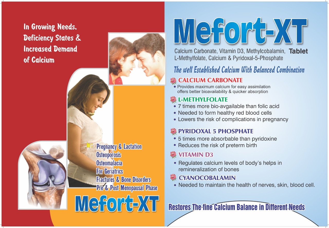 Mefort-XT is a pharmaceutical formulation marketed by Pharmawin Labs. Calcium, Vitamin D3, Cyanocobalamin and L‑Methylfolate nutritional supplement tablet. This product is manufactured following quality standards and is widely used by healthcare professionals for effective patient care. Pharmawin Labs focuses on delivering reliable and high‑quality medicines to support modern medical treatments.